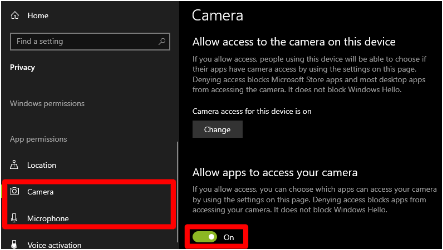 Step 3 - Go to Microphone and Camera in the left sidebar and switch the “Allow apps to access your…” to On.