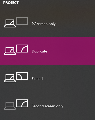 Duplicate = The same will be output to both displays (this option is used for SMARTboards, projectors, etc.).
