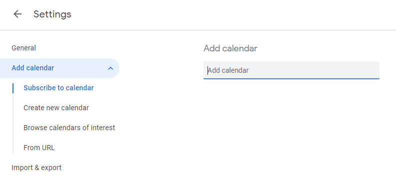 Click the + icon next to “Other calendars” and Select the Subscribe to calendar option.