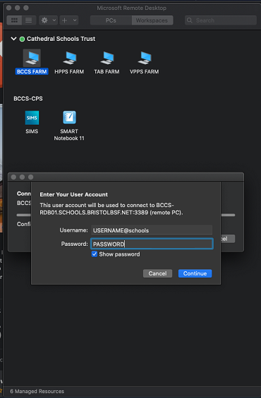 Step 5 - Input your login with the following format schools\Your username and your normal computer login password.