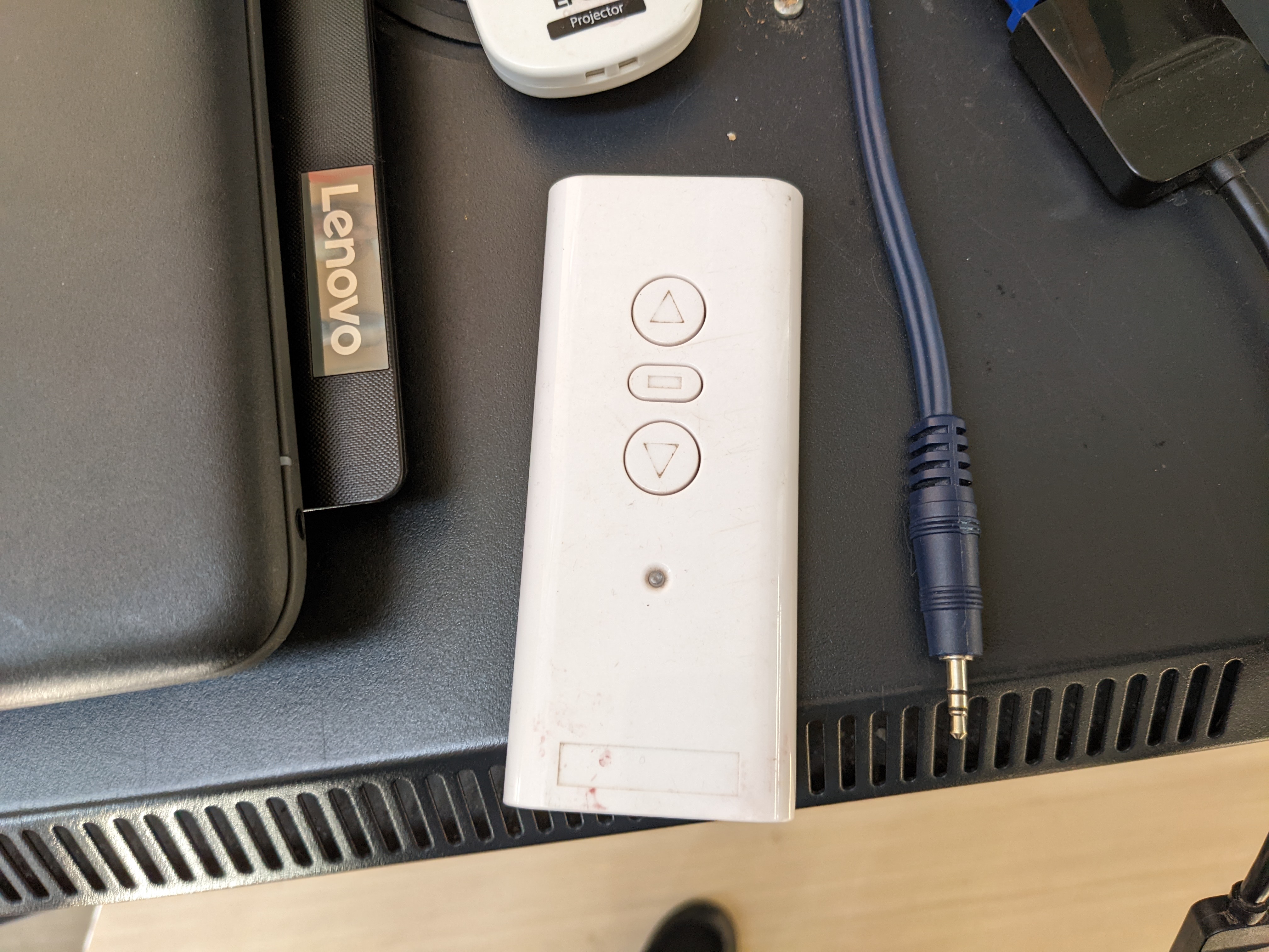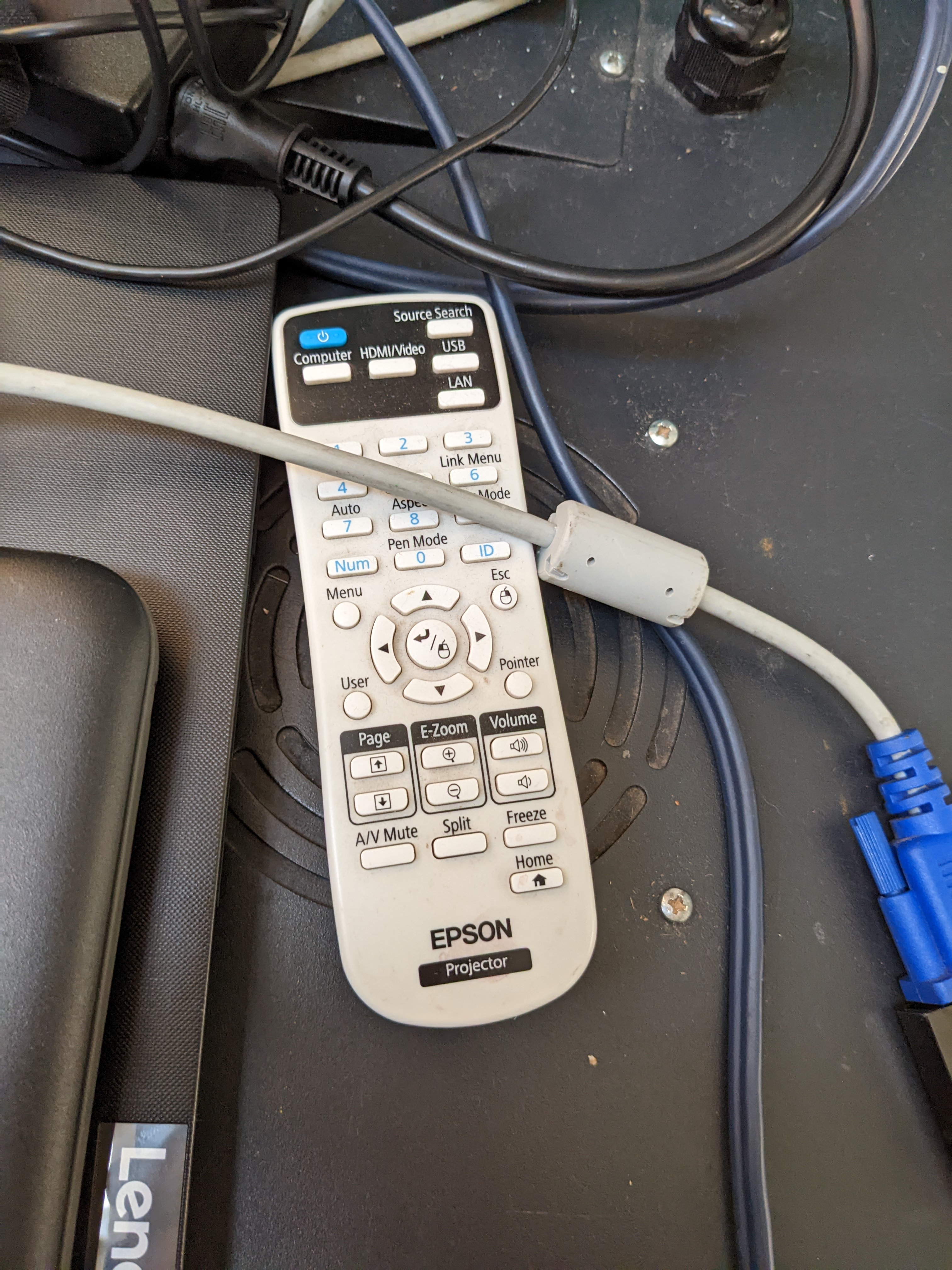 Step 2 - Lower the Projector screen and turn it on (Left remote for projector, Right remote to raise and lower screen)