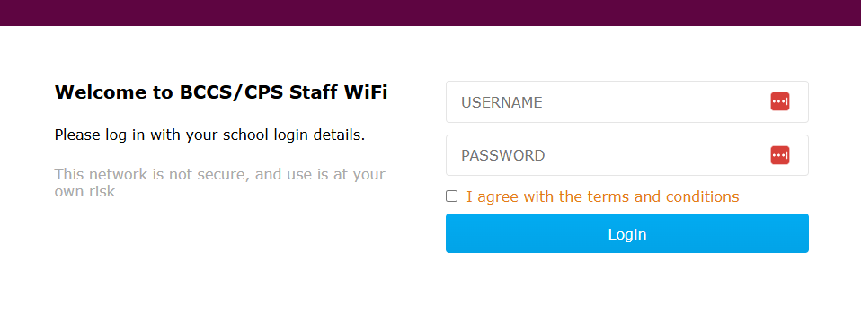 - The password is the same password you use to log in to the school computers or your email. This is not the password you used to connect to the WiFi.